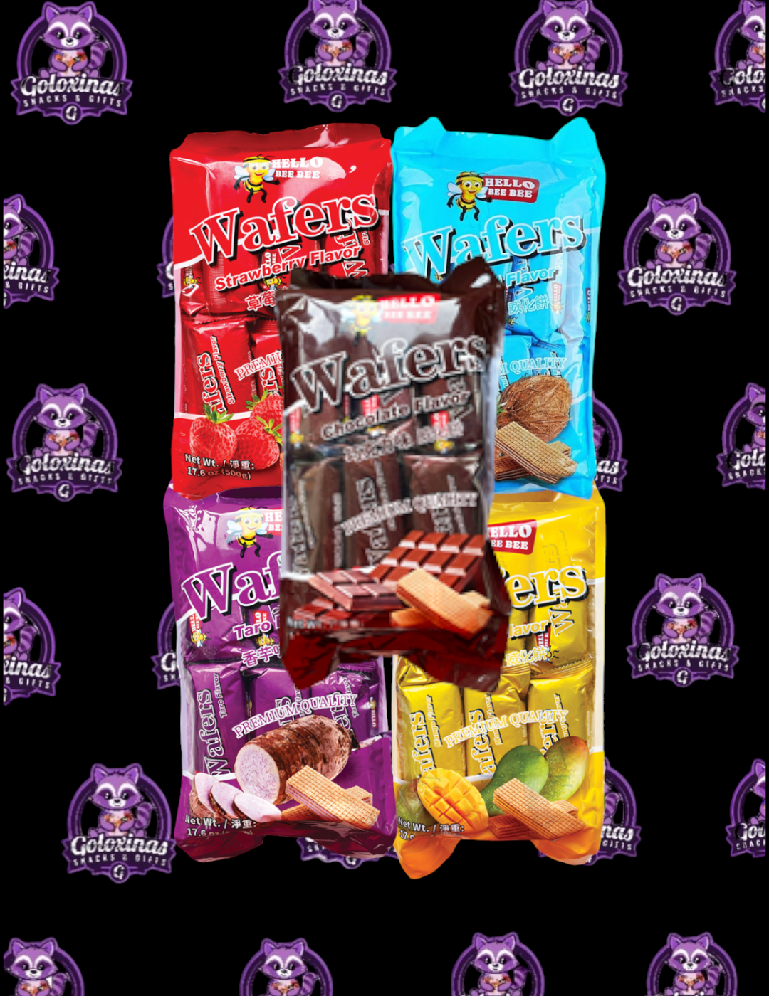 Enjoy these yummy wafers in 5 different flavors! Each bag comes with 20 pieces of individual wrapped wafers